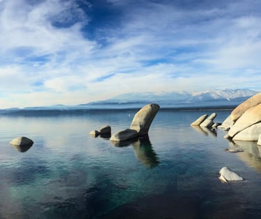 Legend has it that mobsters often chose Lake Tahoe as the final resting place of their foes. At a maximum depth of 1645 feet, and with a noticeably convex surface due to it's impressive scale, it sure does make for a good place to disappear. Luckily for us, we enjoyed hours of swimming, diving, and waterside activities alongside the shoreline - no encounters with mobsters or their victims. Our favorite spot along the route was Meeks Bay, where